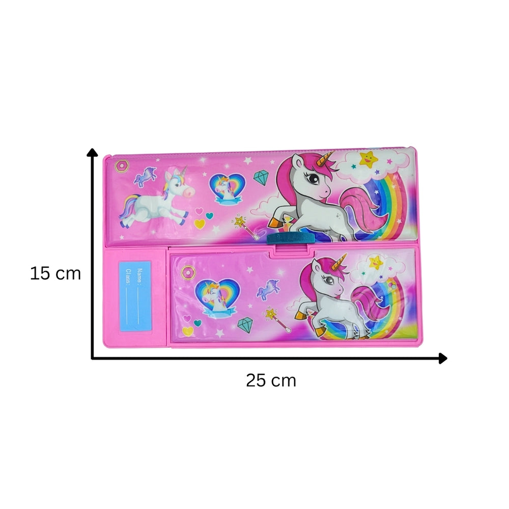 Let your child’s imagination soar with this enchanting pink unicorn pencil box from DailyNeedDeals! Featuring a cute unicorn, rainbows, and castles, this case is both fun and highly practical. Theme: Magical Unicorn and Rainbow design. Dimensions: Generous size at 25 cm long by 15 cm wide, offering ample space. Features: Double-sided opening compartments for separation of pens, pencils, and geometry tools. Includes a dedicated space for name and class. Appeal: A perfect back-to-school item for young girls who love fantasy and pink!