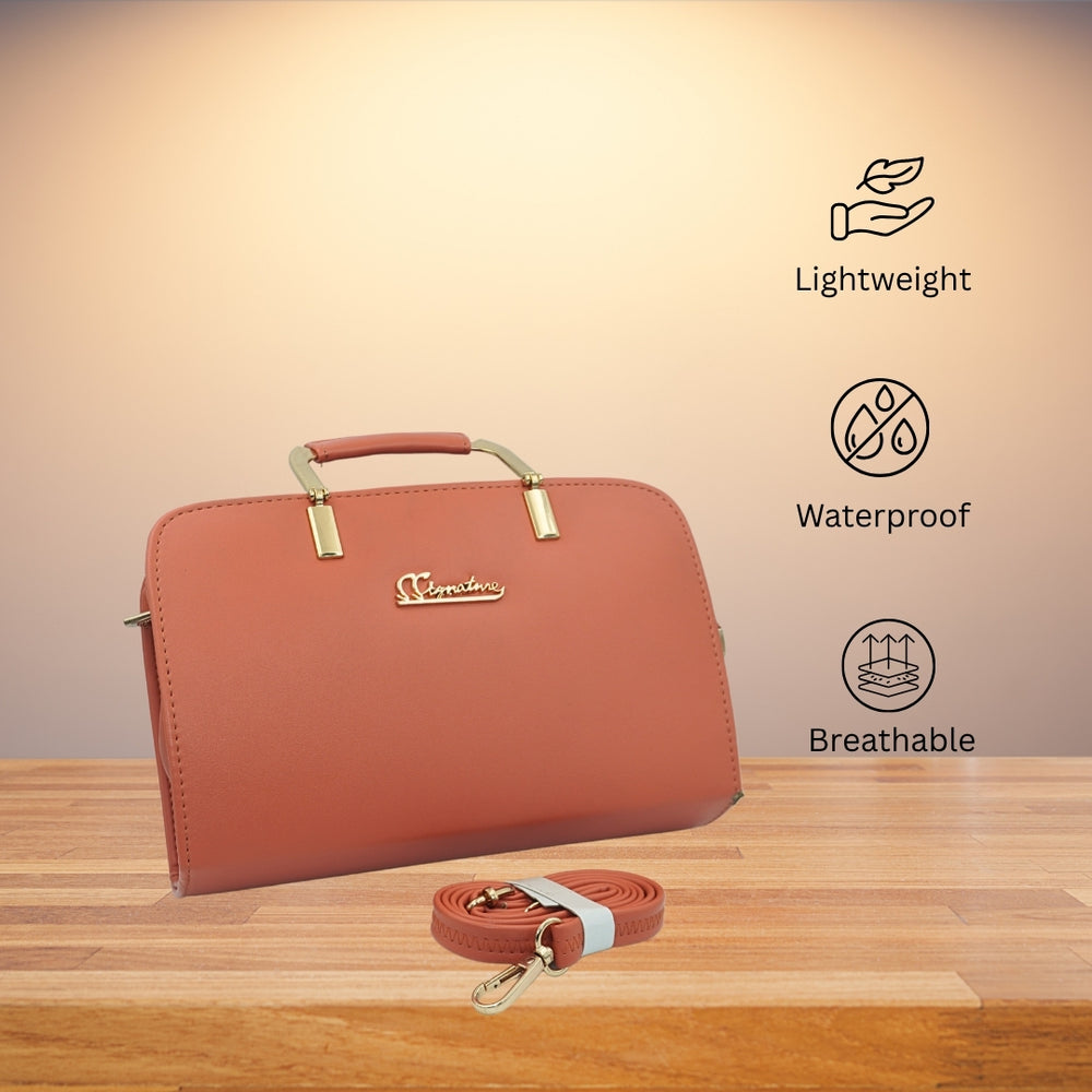 This structured satchel in a warm terra cotta shade is a beautiful and practical addition to your collection from DailyNeedDeals. The boxy shape and gold hardware provide a polished, executive look.