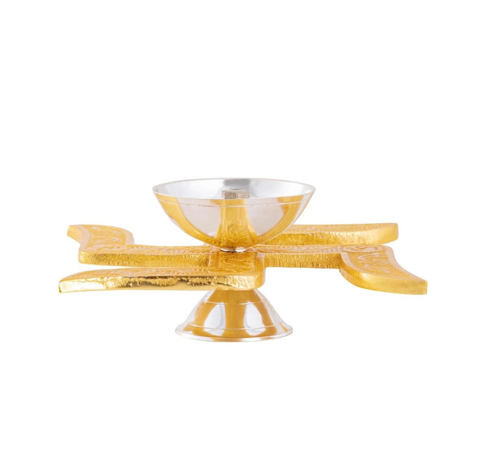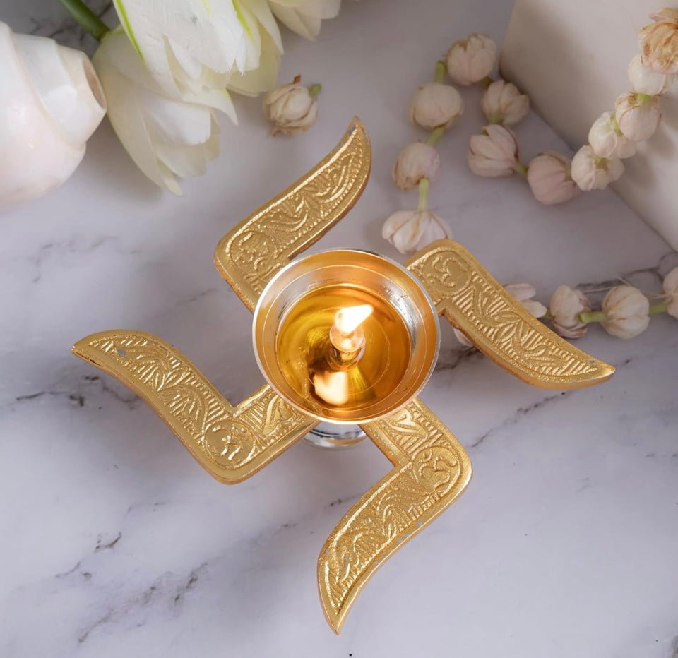 Bring home prosperity and divine blessings with this Swastik Diya beautifully designed for your festive and spiritual needs.