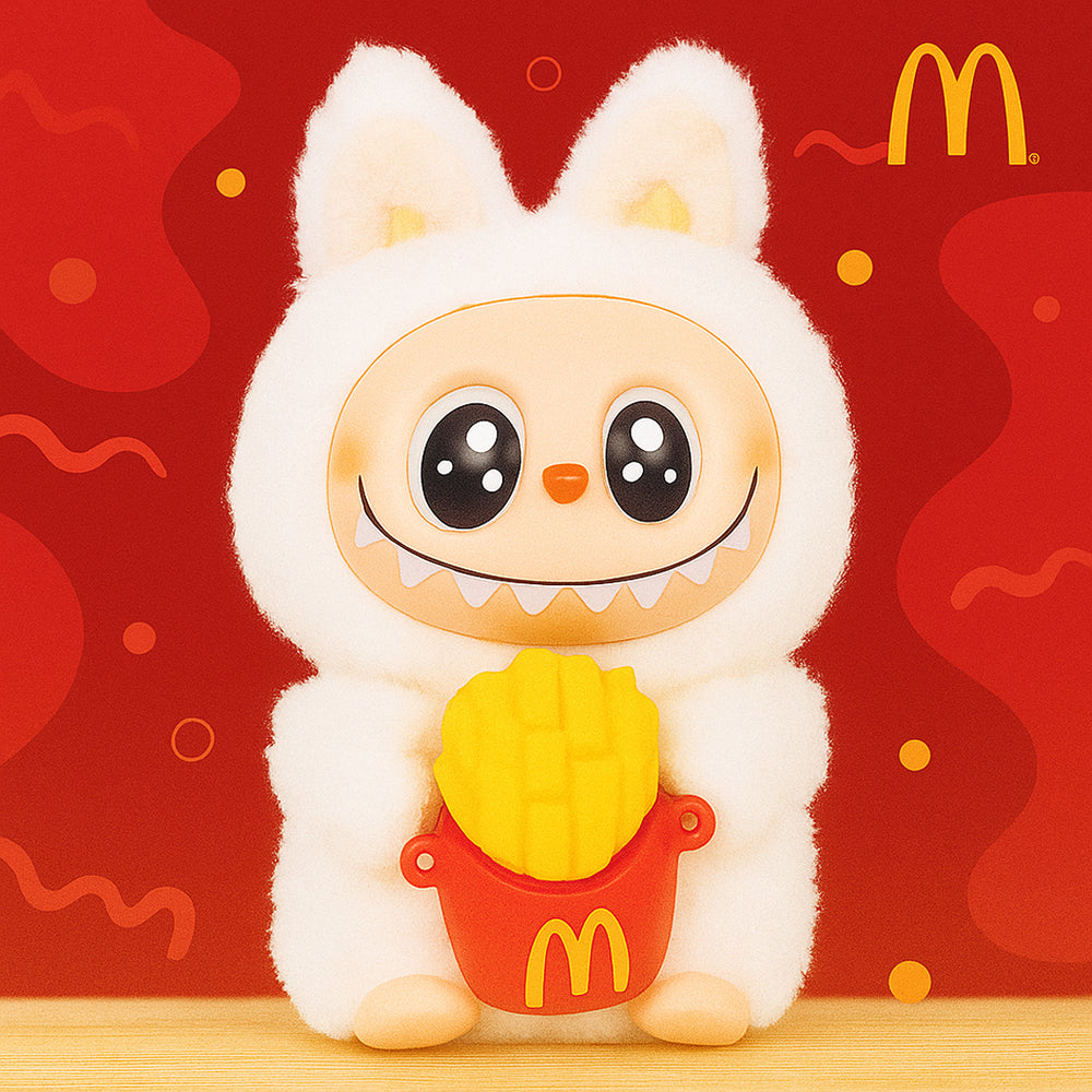 Unleash the cuteness with The Monsters Labubu plush series in collaboration with Coca-Cola and McDonald’s! 🍟🥤 These ultra-soft, collectible Labubu dolls are dressed in fuzzy bunny costumes and come holding iconic treats – a Coca-Cola can, McDonald’s fries, and a classic Coke bottle. Their wide-eyed expressions and fluffy texture make them a must-have for any collector or fan of kawaii culture!